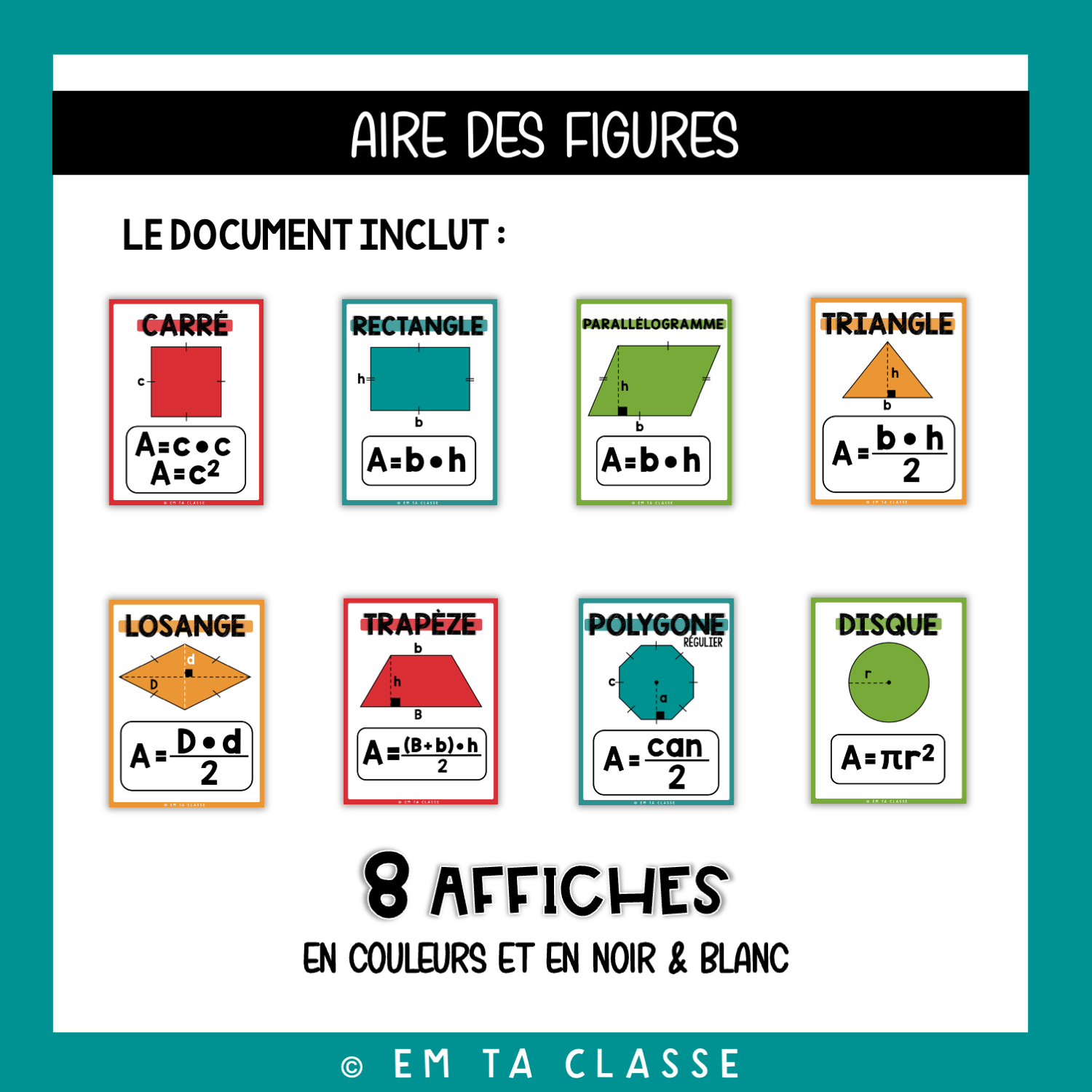Mathématiques Affichage - ENSEMBLE - Figures et Solides - Aire et Volume