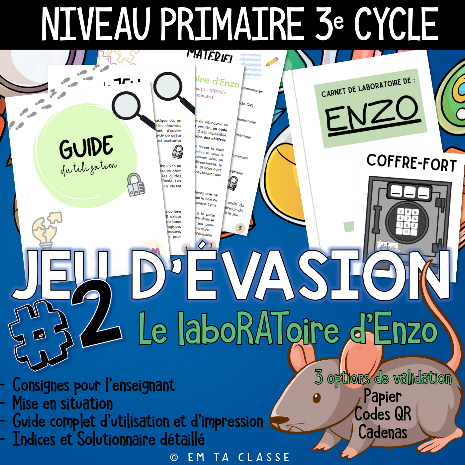 Jeu d'évasion #2 : Le laboRAToire d'Enzo le scientifique - Niveau PRIMAIRE 3e cycle