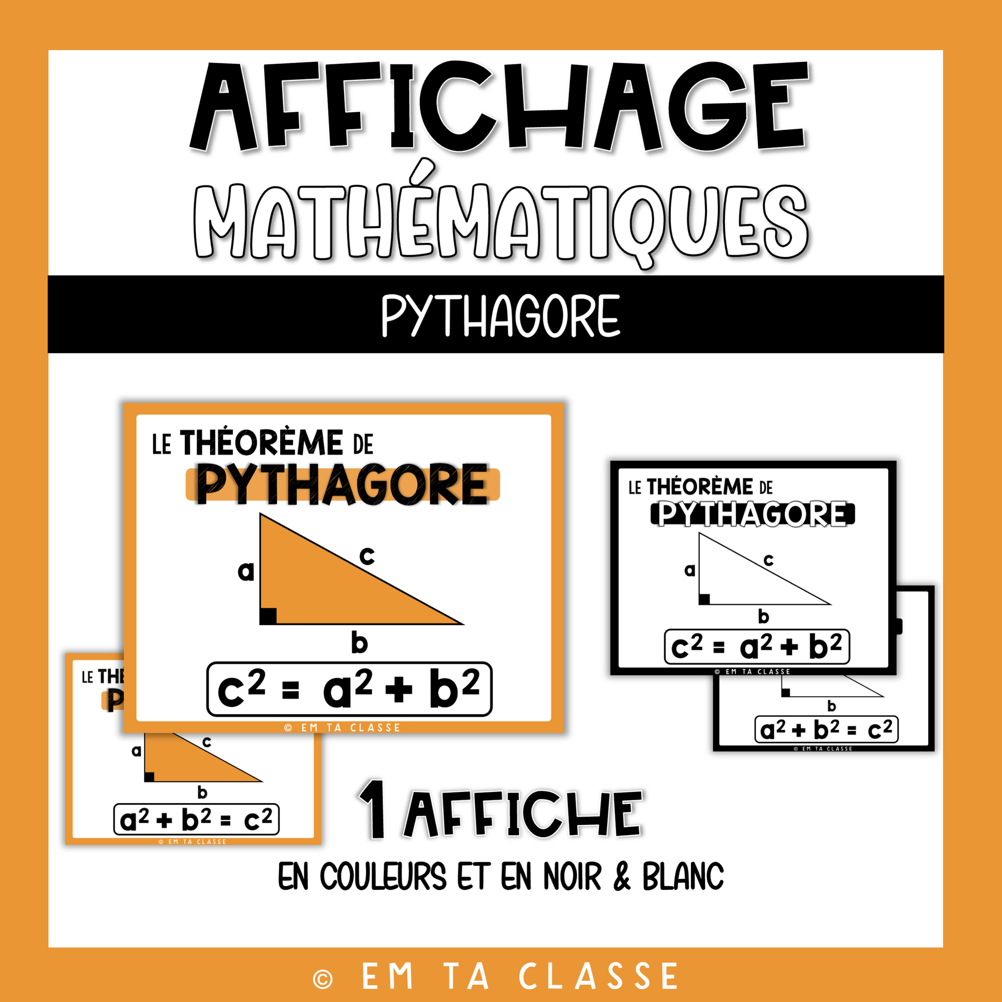 - L'affiche est disponible en deux modèles de formules (c2 = a2 + b2 OU a2 + b2 = c2).