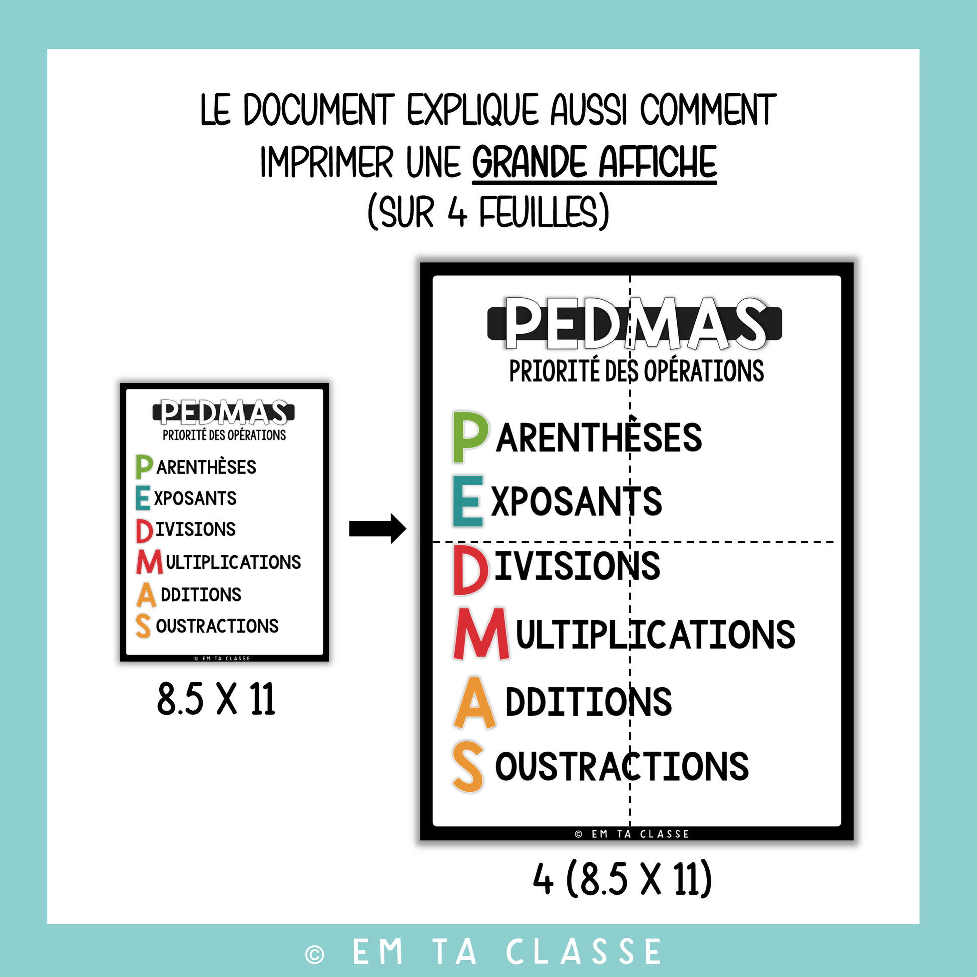 Mathématiques Affichage - Priorité des opérations PEMDAS