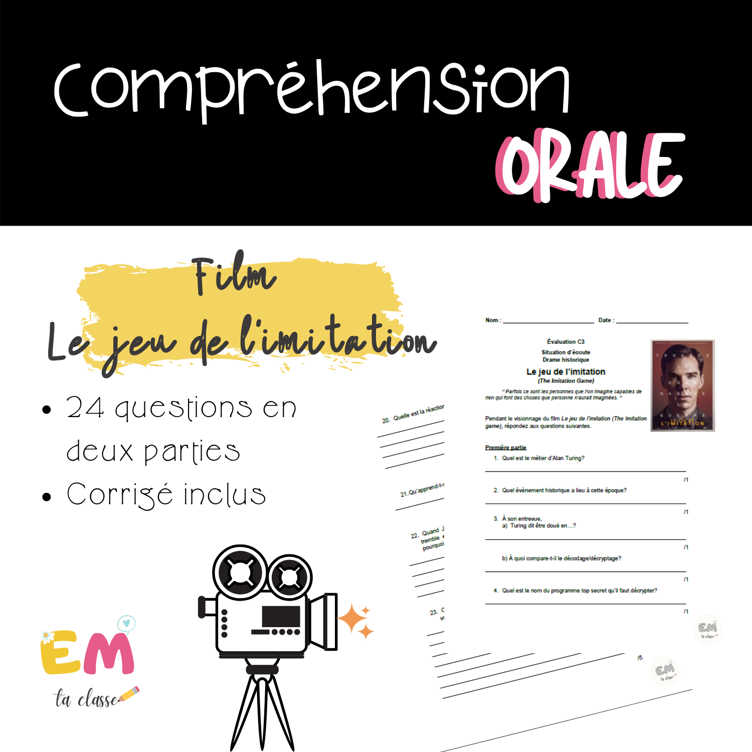 Questionnaire Film Le jeu de l'imitation - Compréhension orale (Écoute) - Français 3e secondaire (2e cycle)